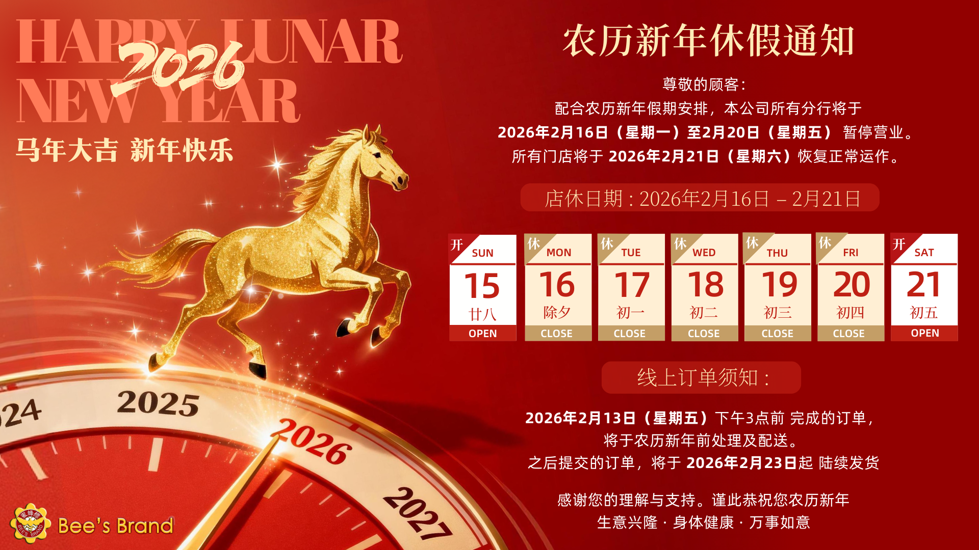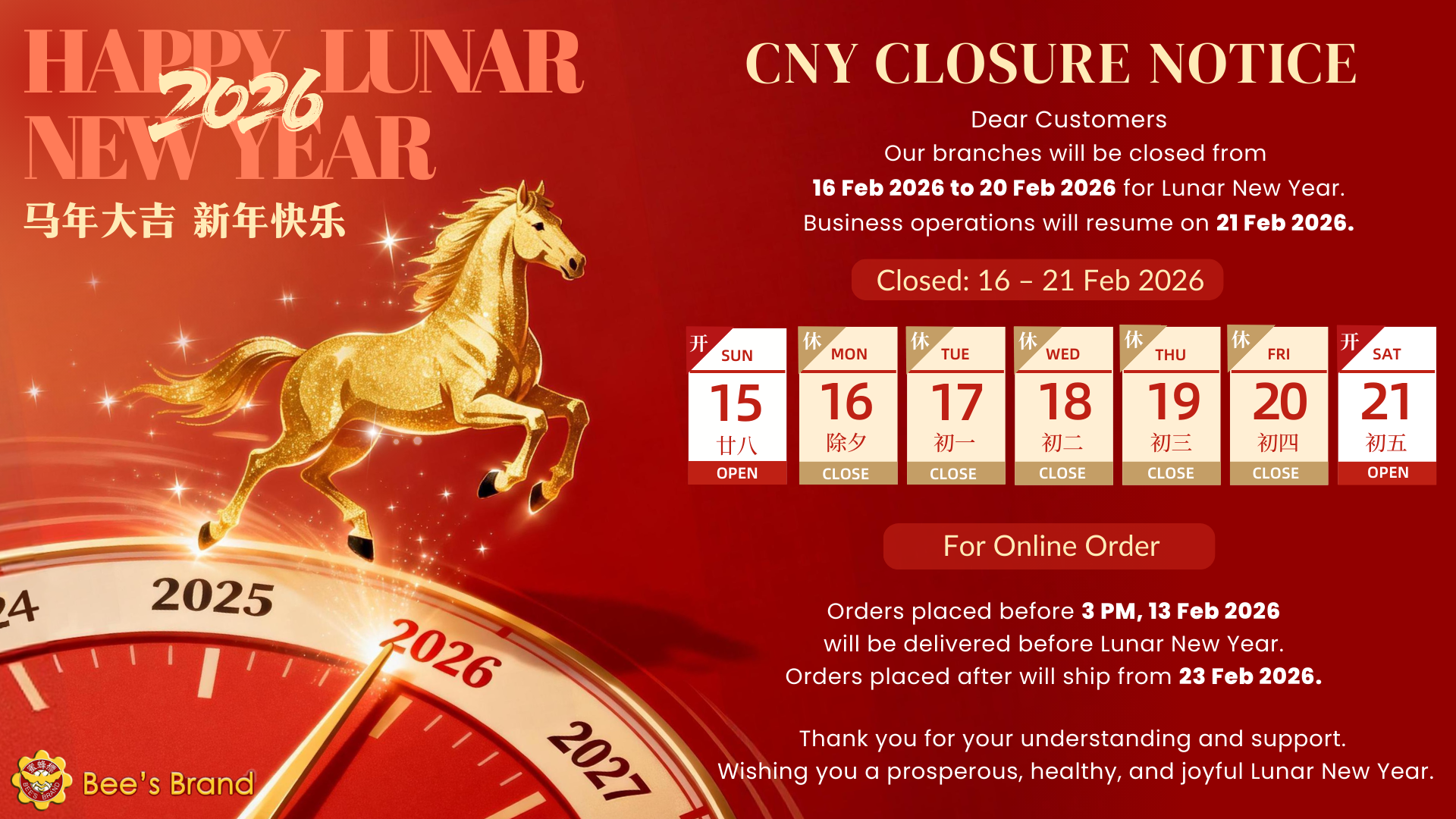 BEE’S BRAND BIRDS NEST AND HEALTH PRODUCTSBlock 399,Yung Sheng Road , #01-08 Singapore 610399 亲爱的顾客,裕廊分店将于01/09/2025正式开业于新地址 ,裕廊花园购物中心永升路399座,门牌#01-08 ,新加坡邮区 610399继续为您服务 ,感恩各位客服长期以来对我们的支持。诚盼各位再次光临 ! Dear Customers, We are pleased to announce that our Jurong...
